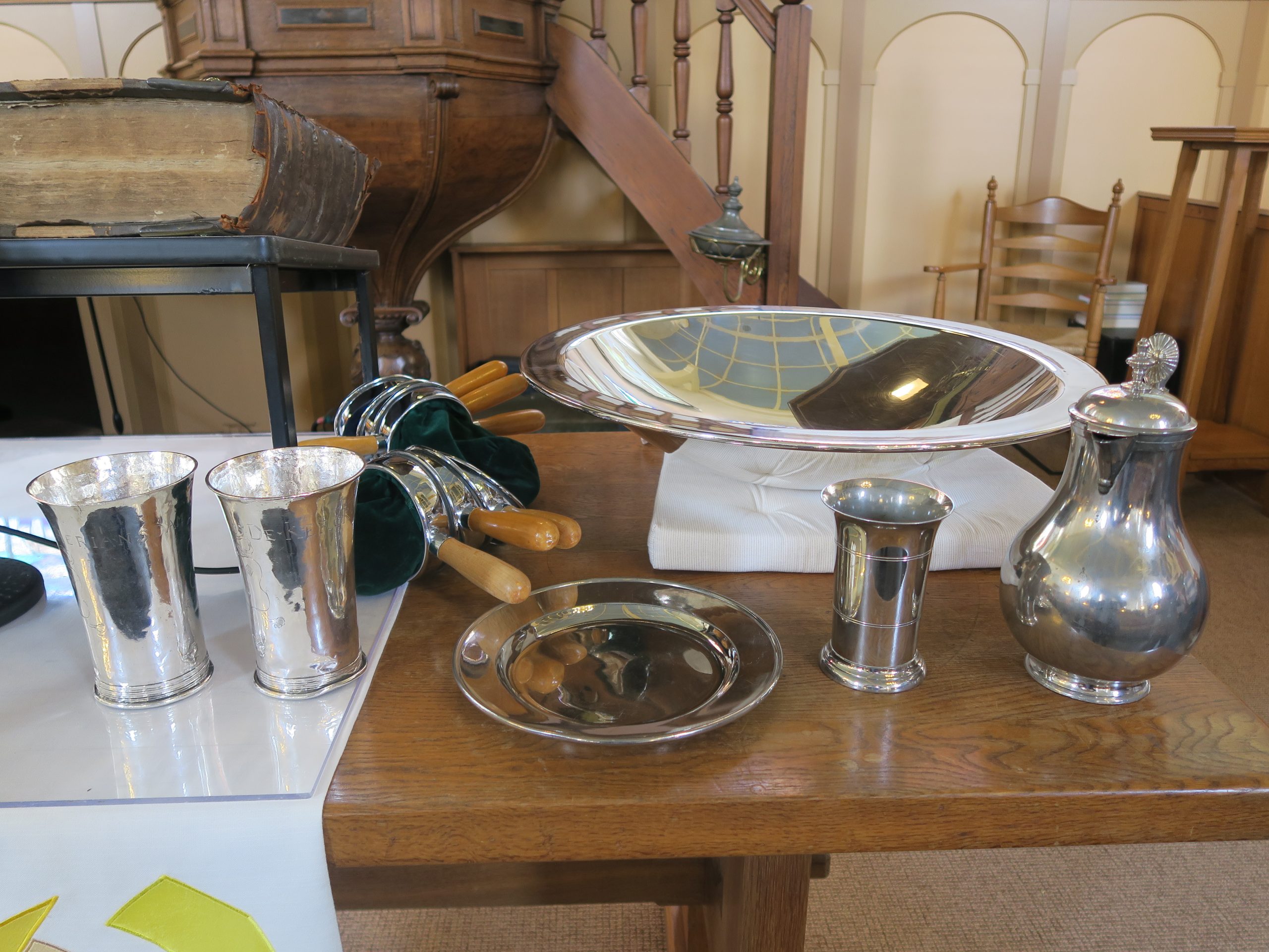 In het drempelgebed benoemden we dat de drempel op deze dag nog wel wat hoger was dan op andere zondagen. We vroegen juist óp deze drempel om nieuw uitzicht. De liederen waren prachtig en toepasselijk, de sfeer enerzijds beladen en verdrietig, anderzijds vrolijk en hoopvol. 1 Petrus 2: 1 t/m 10 bepaalde ons erbij dat het niet gaat om een huis, een tempel van ‘hout en steen’; hij daagt ons uit om ‘levende stenen’ te zijn, gebouwd op de ‘hoeksteen’ Jezus Christus. Een muur van levende stenen